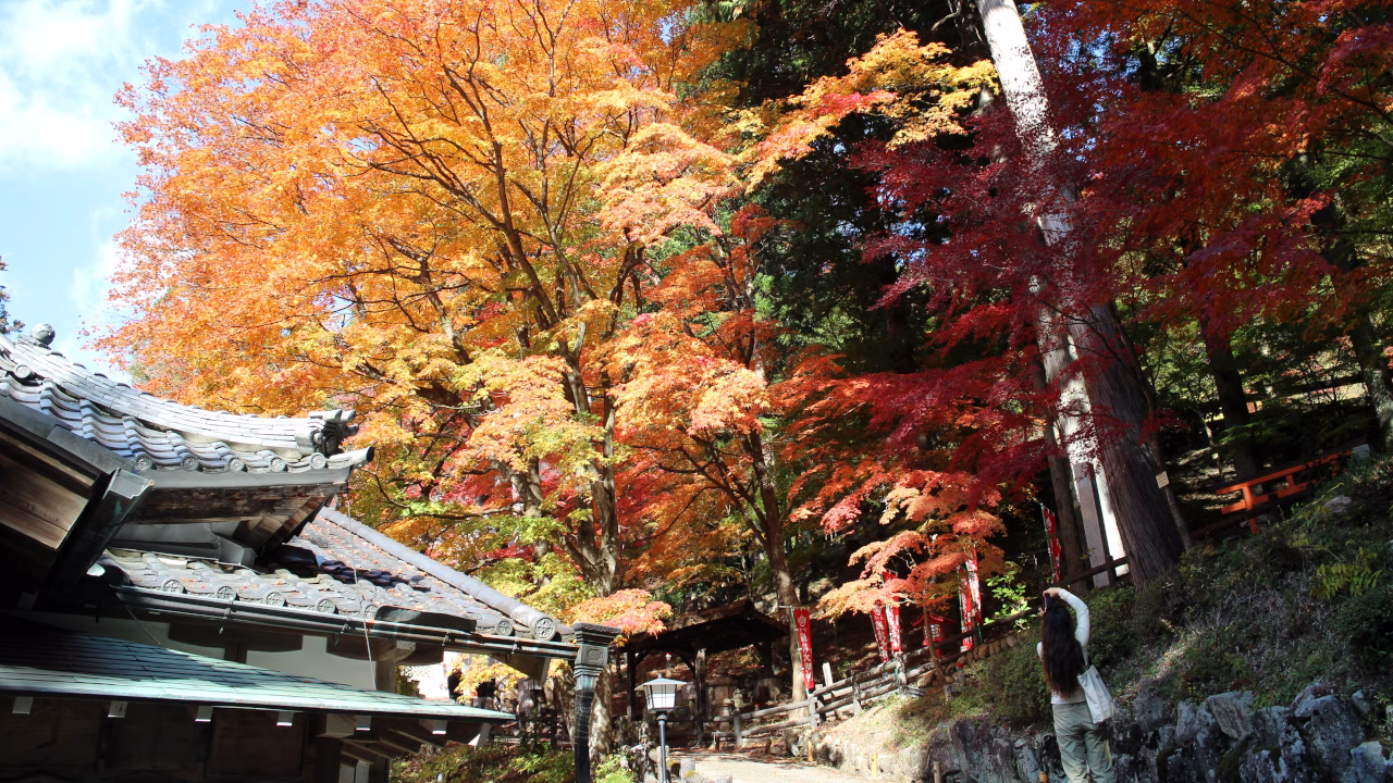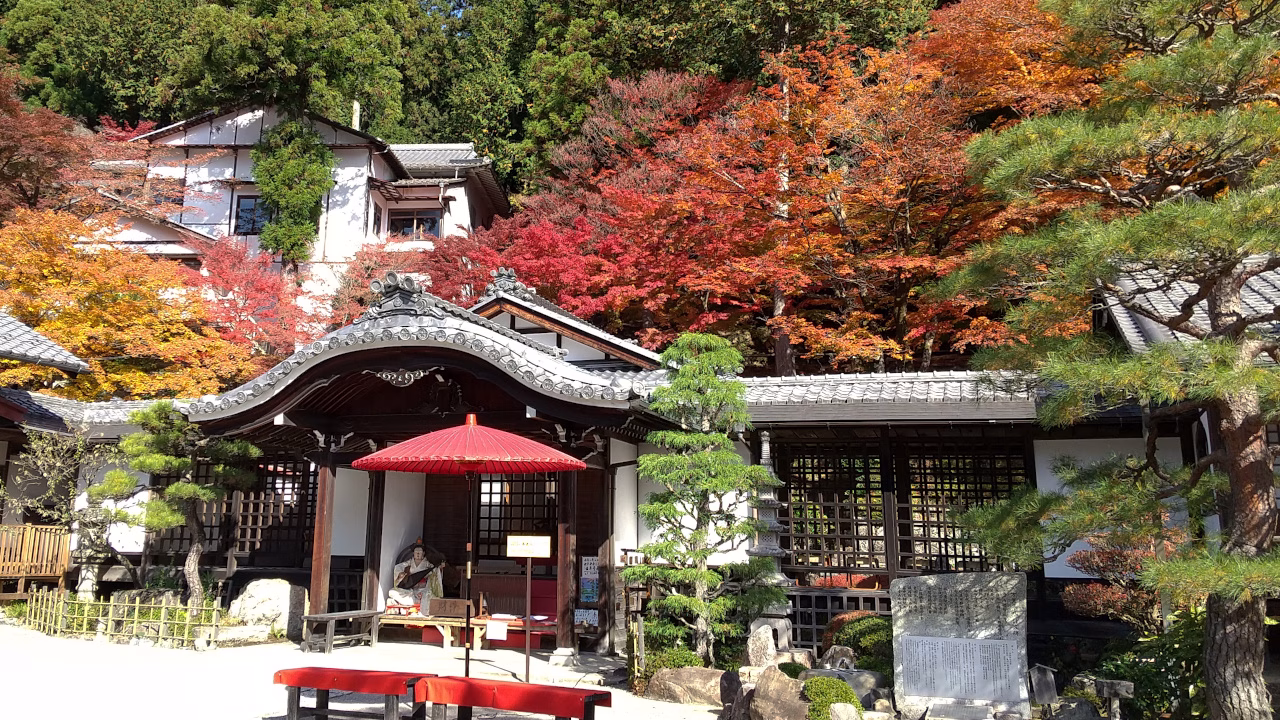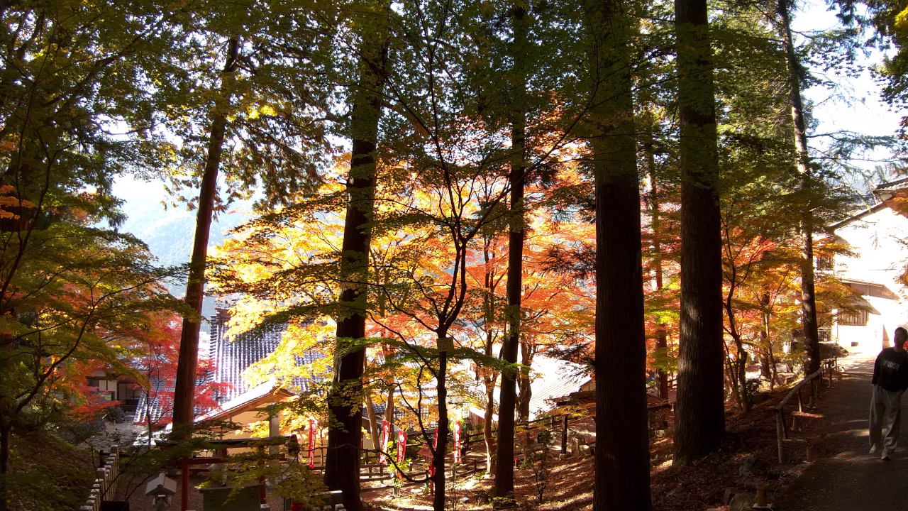 「こんなもんか!」と思いながらも石段で寺の裏手に回ると見事な紅葉が広がっていました。